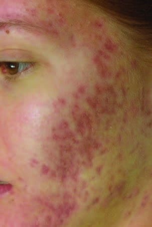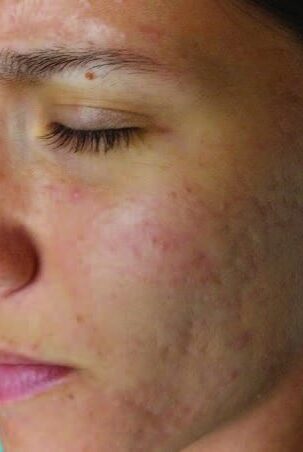 - Addresses the red and purple discoloration associated with acne scars by increasing blood flow.