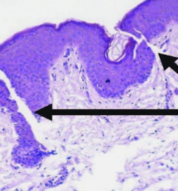- This DEJ-shallow dermis area is the target depth to microneedle. See arrows where microchannels are formed