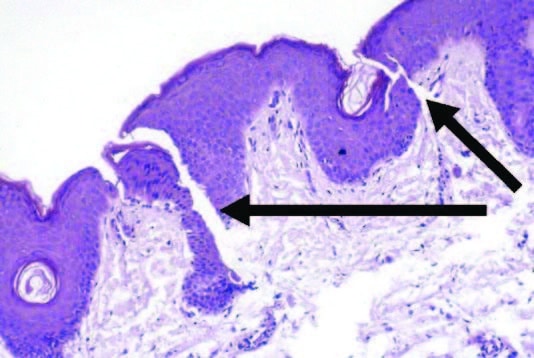 - This DEJ-shallow dermis area is the target depth to microneedle. See arrows where microchannels are formed