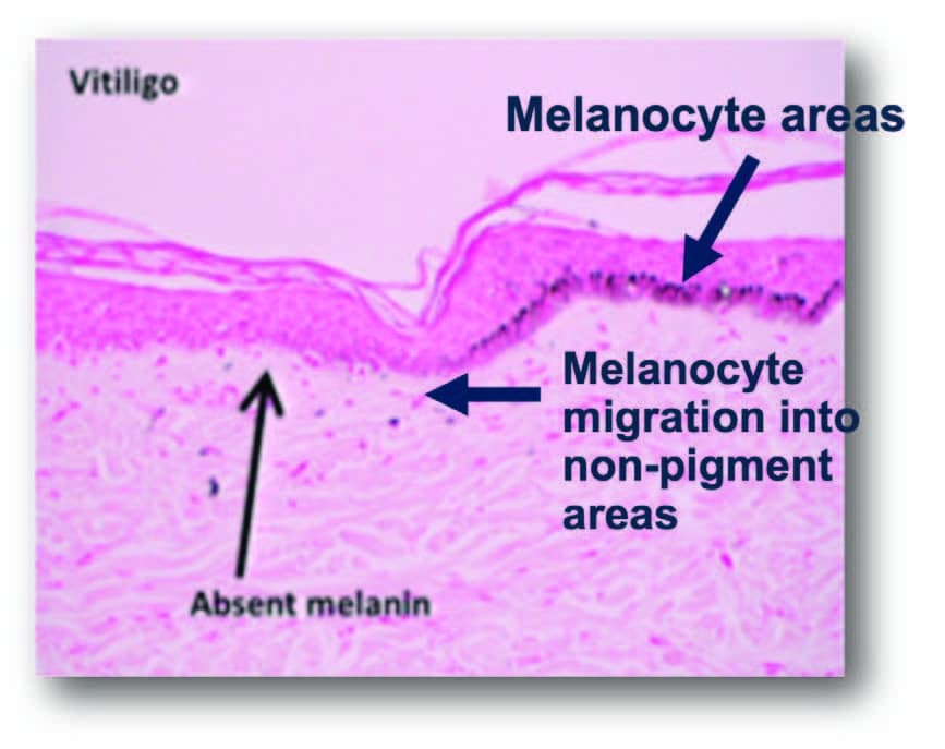 - Also, mechanical trauma stimulates the melanocytes migration from the pigmented areas to unpigmented areas.
